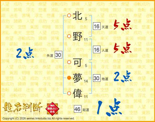 北野可夢偉さんの総運は46画の1点!