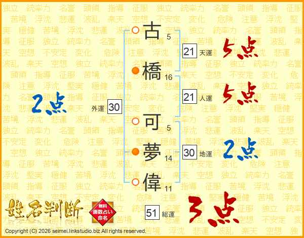 古橋可夢偉さんの天運は21画の5点!