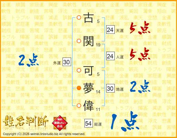 古関可夢偉さんの人運は24画の5点!