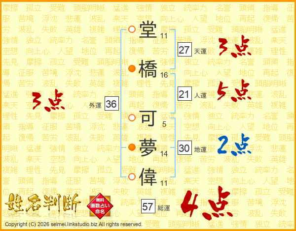 堂橋可夢偉さんの総運は57画の4点!