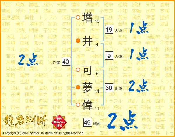 増井可夢偉さんの総運は49画の2点!
