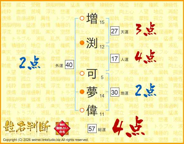 増渕可夢偉さんの総運は57画の4点!