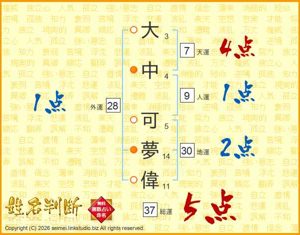 大中可夢偉さんの総運は37画の5点!