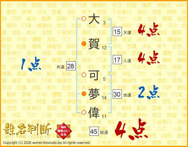 大賀可夢偉さんの総運は45画の4点!
