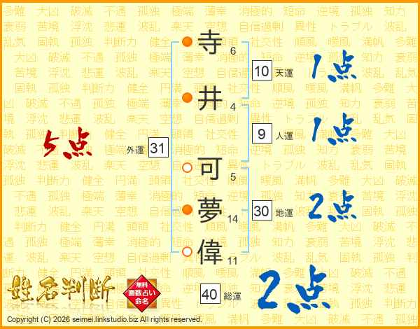 寺(6画)井(4画) 可(5画)夢(14画)偉(11画)