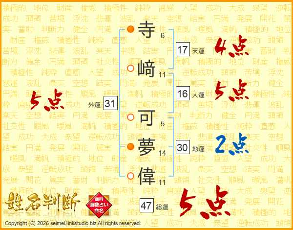 寺﨑可夢偉さんの総運は47画の5点!