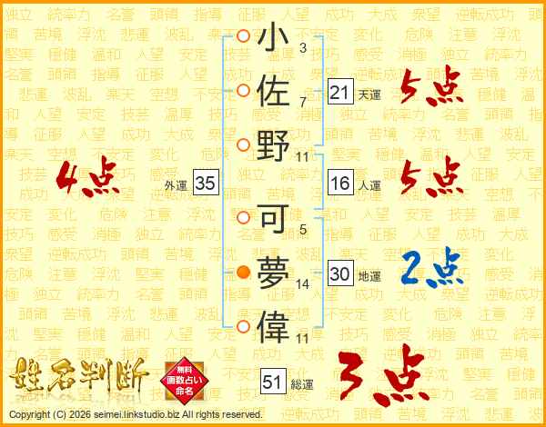 小佐野可夢偉さんの総運は51画の3点!