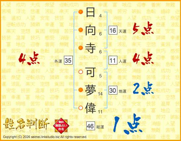 日向寺可夢偉さんの外運は35画の4点!