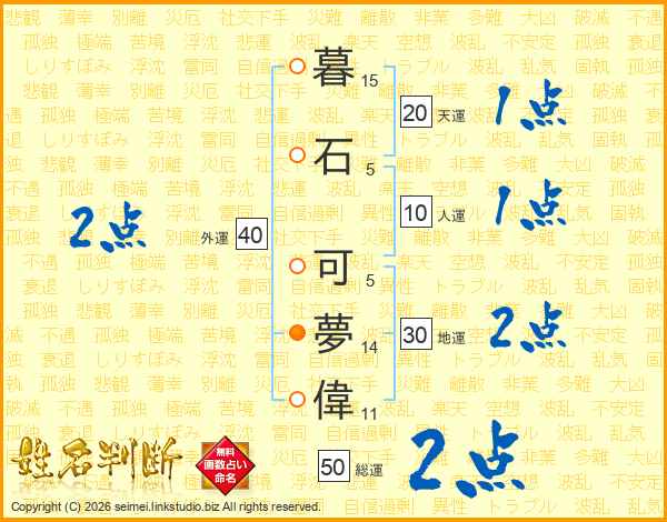 暮石可夢偉さんの総運は50画の2点!