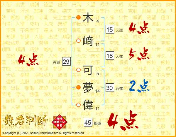 木(4画)﨑(11画) 可(5画)夢(14画)偉(11画)