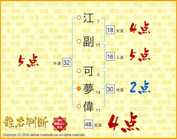 江副可夢偉さんの総運は48画の4点!