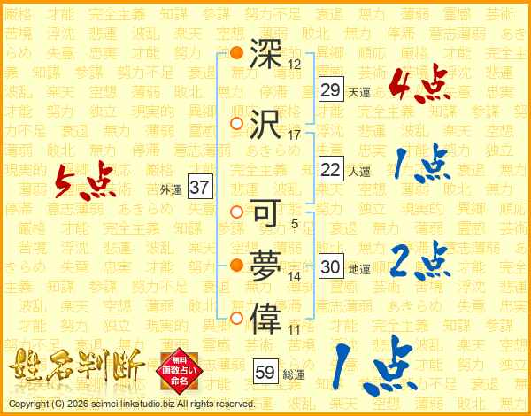 深沢可夢偉さんの天運は29画の4点!