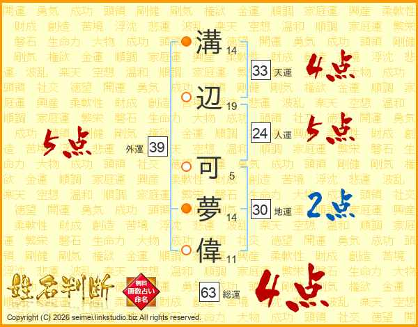 溝辺可夢偉さんの天運は33画の4点!