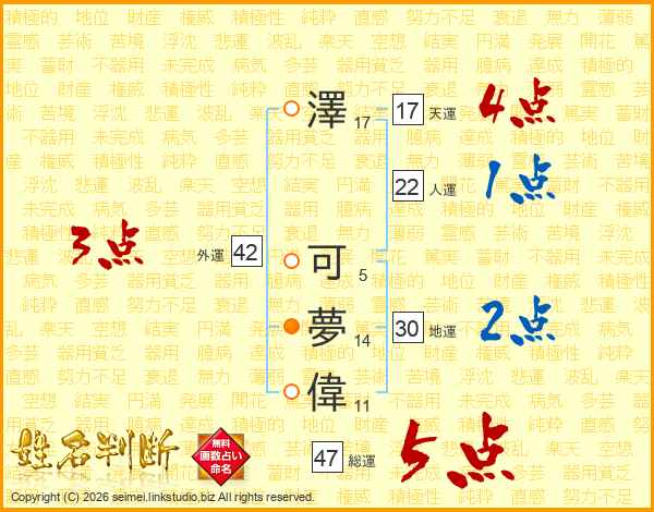 澤可夢偉さんの総運は47画の5点!