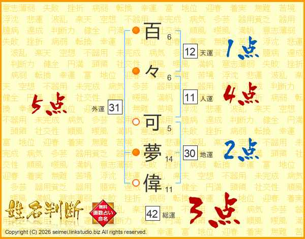 百(6画)々(6画) 可(5画)夢(14画)偉(11画)