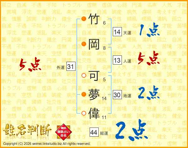 竹岡可夢偉さんの地運は30画の2点!