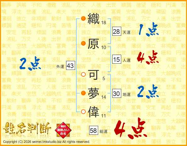 織原可夢偉さんの総運は58画の4点!