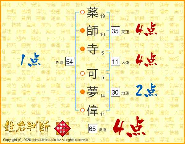 薬師寺可夢偉さんの総運は65画の4点!