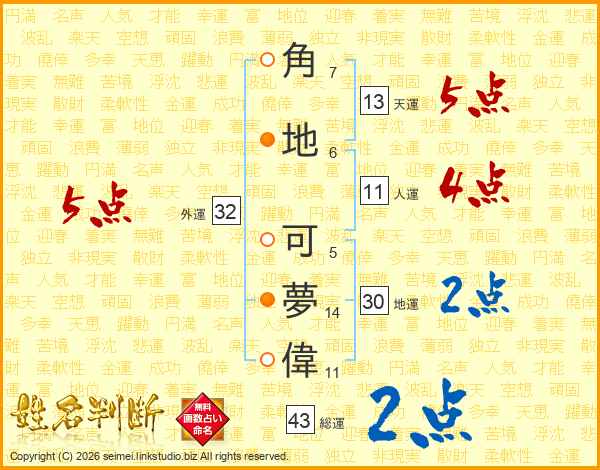 角地可夢偉さんの外運は32画の5点!
