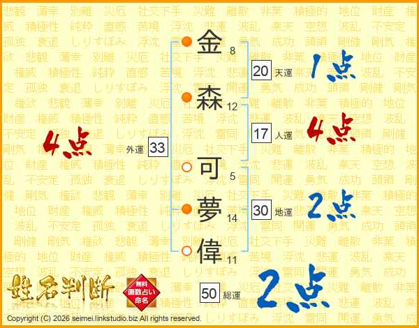 金森可夢偉さんの外運は33画の4点!