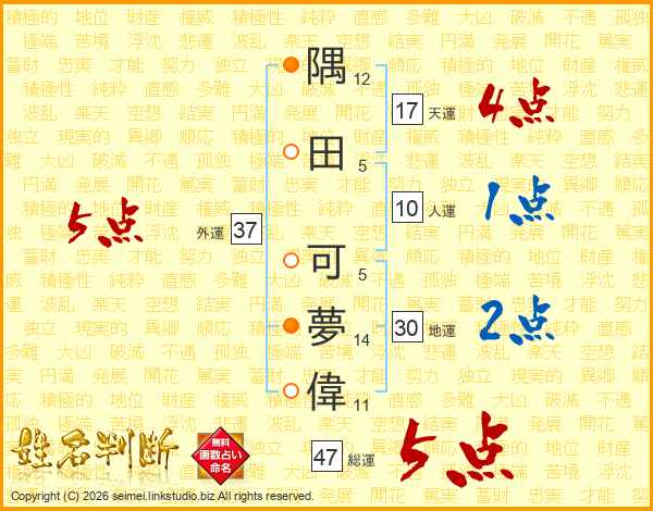 隅田可夢偉さんの総運は47画の5点!
