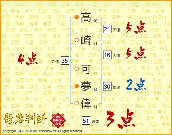 高崎可夢偉さんの天運は21画の5点!