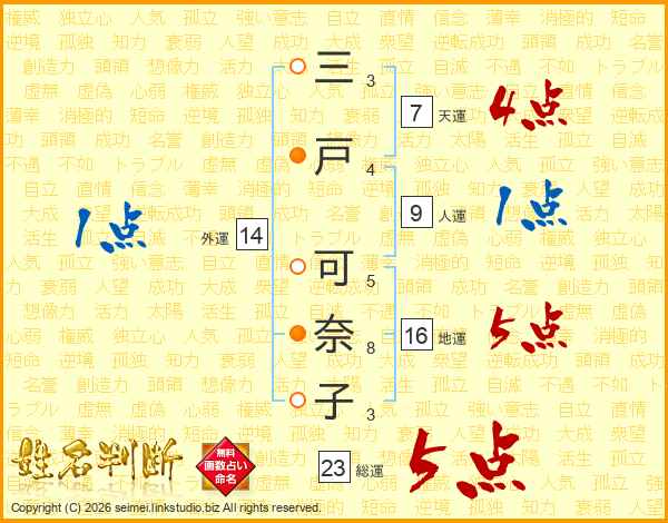 三戸可奈子さんの総運は23画の5点!