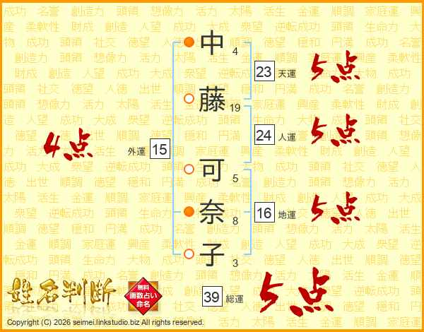 中藤可奈子さんの総運は39画の5点!