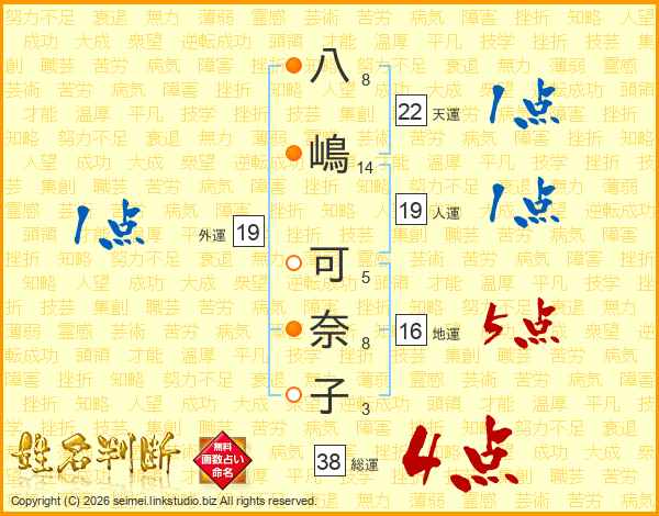 八嶋可奈子さんの総運は38画の4点!