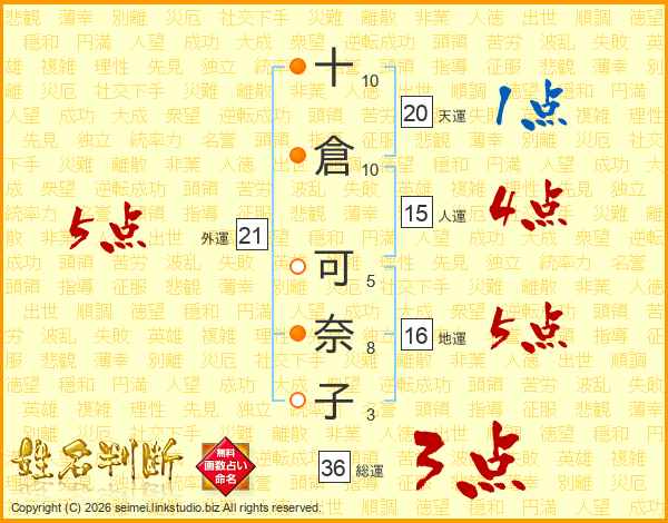 十倉可奈子さんの外運は21画の5点!