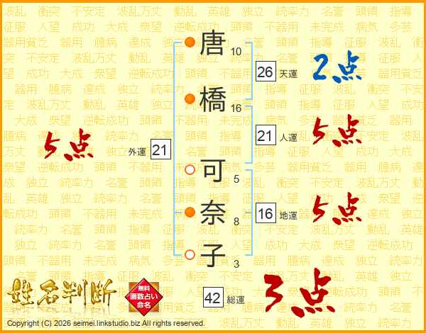 唐橋可奈子さんの外運は21画の5点!