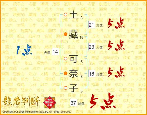 土藏可奈子さんの総運は37画の5点!