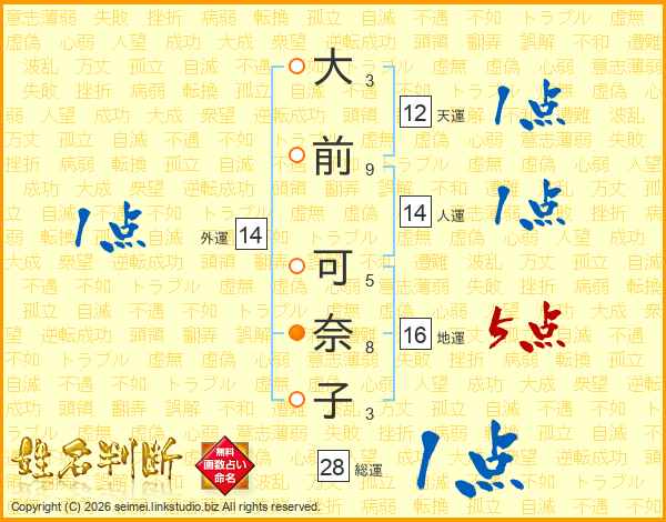 大前可奈子さんの外運は14画の1点!
