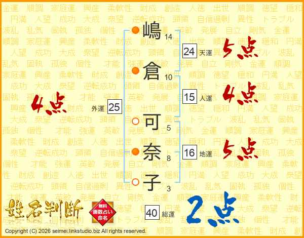 嶋倉可奈子さんの総運は40画の2点!