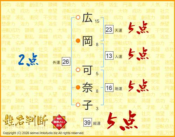 広岡可奈子さんの総運は39画の5点!