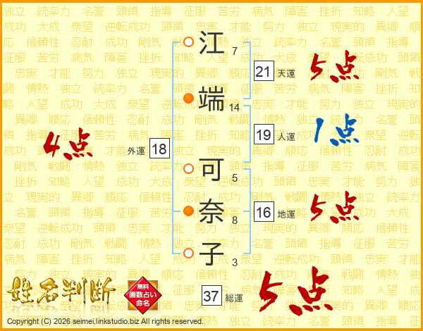 江端可奈子さんの総運は37画の5点!