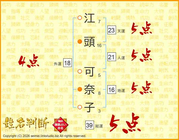 江頭可奈子さんの総運は39画の5点!