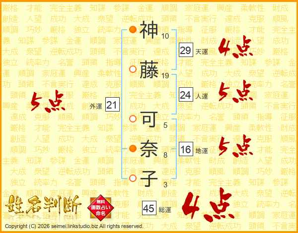 神藤可奈子さんの総運は45画の4点!