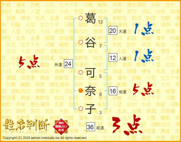 葛谷可奈子さんの外運は24画の5点!