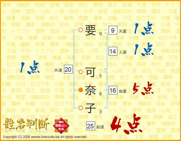 要可奈子さんの総運は25画の4点!