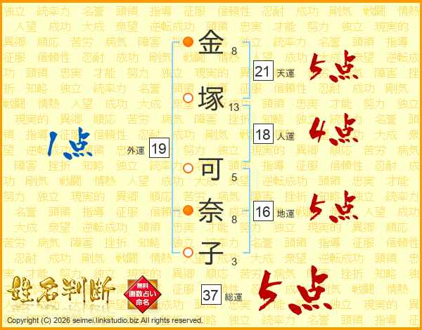 金塚可奈子さんの総運は37画の5点!