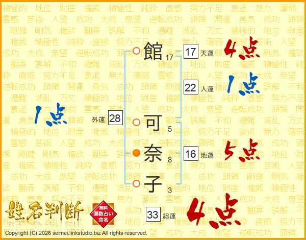 館可奈子さんの総運は33画の4点!