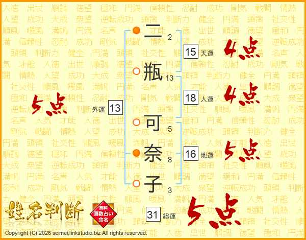 二瓶可奈子さんの外運は13画の5点!