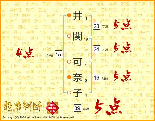 井関可奈子さんの総運は39画の5点!