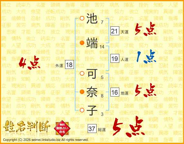 池端可奈子さんの総運は37画の5点!