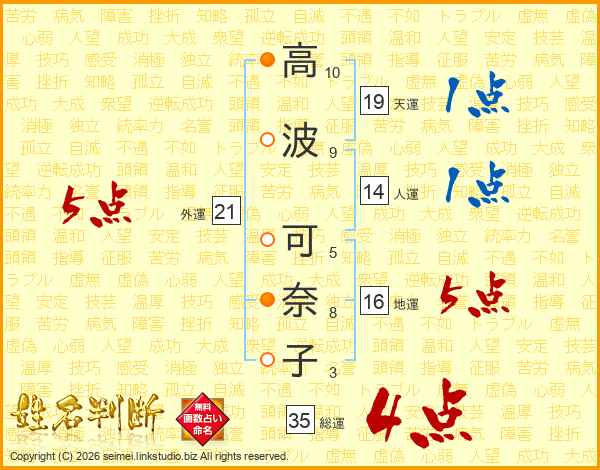 高波可奈子さんの外運は21画の5点!