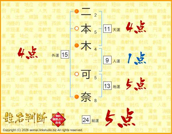 二本木可奈さんの天運は11画の4点!