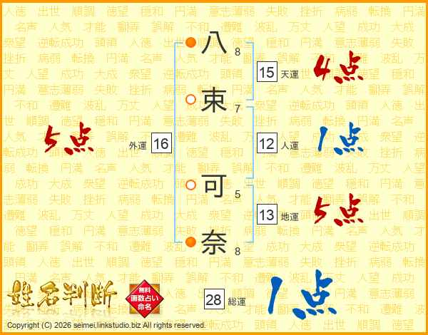 八束可奈さんの総運は28画の1点!