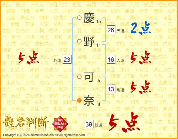 慶野可奈さんの総運は39画の5点!