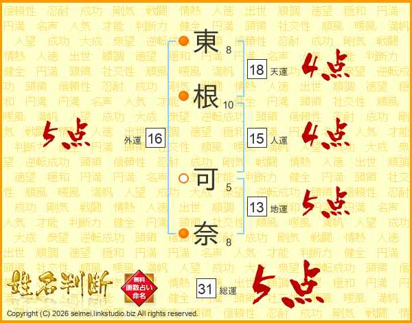 東根可奈さんの総運は31画の5点!